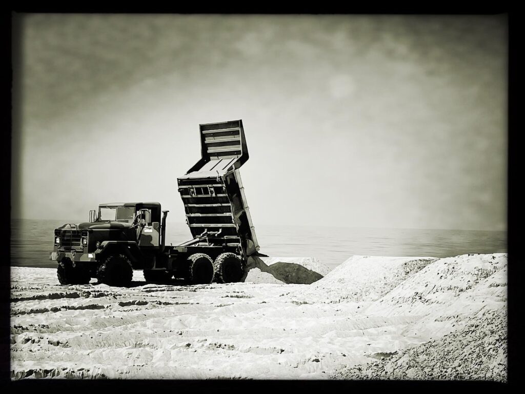 My idea playing in the sand. Looks like an army 5 ton 6×6 hauling sand.