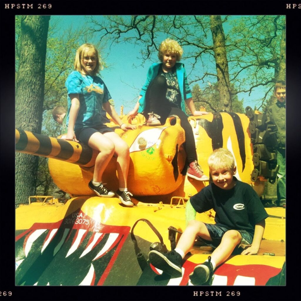 I had a blast yesterday at Cantige. Courtney has been studying WWI and WW II, and it was fun to see her interest. B and R just wanted to climb tanks. R was fun to watch scrambling around with his cast; not much stopped him.